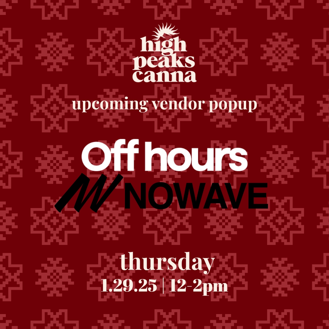 Join us Thursday, January 29 from 12-2pm, for a special vendor pop-up featuring Off Hours / NoWave— NY brands known for thoughtfully crafted cannabis products and elevated vibes.